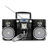 | SuperSonic SC-986VCD Black Portable CD Cassette Player AM FM Stereo This is a brand new, factory sealed SuperSonic SC-986VCD portable boombox stereo system with CD player, digital AM/FM radio and cassette tape recorder which retails for $199.99 plus tax. This boombox features a top-loading CD player with play, pause, skip, search and repeat functions. Additionally, it comes equipped with a digital AM/FM radio and cassette tape recorder with soft eject as well as one touch recording. Dynamic high performance, twin stereo speakers produce rich, full sound while the digital volume control with bass boost system (DBBS) allows users to have ultimate control over sound variation. The programmable CD memory allows you to store up to 100 track entries for the ultimate playback experience. The illuminated digital LCD display clearly illustrates track numbers, radio stations and basic functions viewable from any angle. A power cord, remote control, and owner's manual are included. Complete with a full warranty and our exclusive 30 day money back guarantee. |